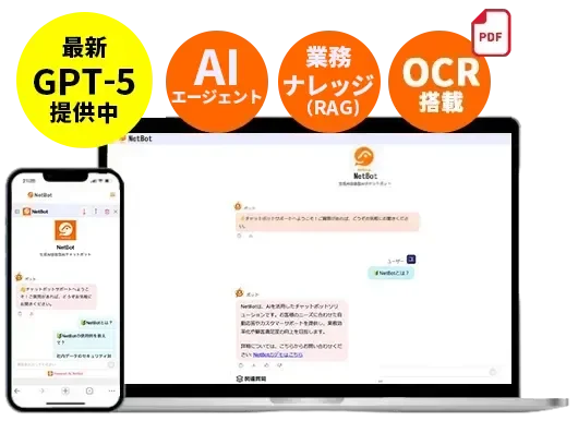 対話型AIエージェント「NetBot」は、各企業の特定のニーズや業務フローに合わせた柔軟なカスタマイズが可能な対話型人工知能です。ユーザーインターフェースや機能の調整も柔軟に対応可能で、直感的に使いこなせるAIチャットシステムを構築できます。(最新モデルのChatGPT5も搭載可能)