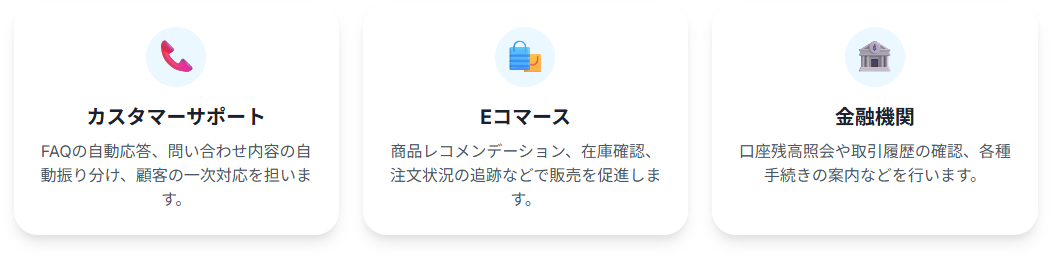 そのため、ルールベースのチャットボットよりも柔軟で自然な対話が可能です。