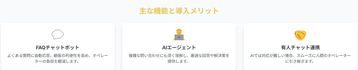 FAQチャットボットは、顧客から頻繁に寄せられる質問(FAQ)に対して、自動で回答を提供する機能です。24時間365日、リアルタイムで対応が可能なため、顧客は時間や場所を選ばずに、いつでも疑問を解決することができます。これにより、顧客満足度の向上はもちろんのこと、オペレーターの負担軽減にも大きく貢献します。