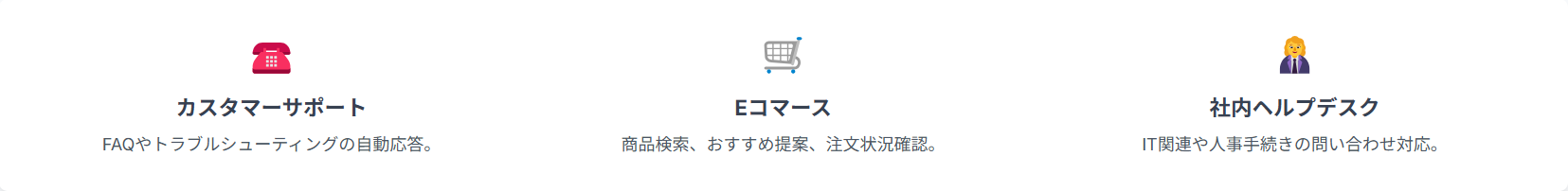 商品検索、おすすめ商品の提案、注文状況の確認など、Eコマースにおける顧客体験を向上させることができます。