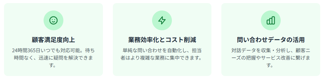 チャットボットは、よくある質問(FAQ)への回答や、簡単な問い合わせ対応を自動化することで、人件費を大幅に削減することができます。カスタマーサポート担当者は、より複雑な問題や、人間による対応が必要なケースに集中できるようになり、業務効率が向上します。また、チャットボットは、複数の問い合わせに同時並行で対応できるため、待ち時間を短縮し、顧客体験を向上させることができます。さらに、チャットボットの導入により、採用、研修、人事評価などの間接的なコストも削減できます。これらの効果により、企業は、コスト削減と業務効率化を同時に実現することができます。