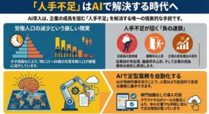AI技術の進化と導入ハードルの低下により、AIは人手不足に悩む企業にとって、現実的な解決策となりつつあります。