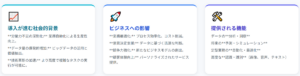 また、技術革新の加速も、AIソリューション導入を後押しする要因となっています。AI技術は、近年、急速な進歩を遂げており、より高度で複雑なタスクを実行できるようになっています。これにより、企業は、これまで不可能だったような革新的なビジネスモデルやサービスを開発し、競争優位性を確立することができます。