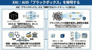 XAIは、AIの判断根拠を明確にすることで、企業がAIのリスクを管理し、信頼性を高めることを支援します。特に、規制が厳しい業界においては、XAIの導入が不可欠となる可能性があります。