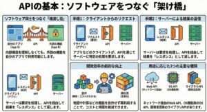 API(Application ProgrammingInterface)は、ソフトウェア開発において重要な役割を果たしています。この記事では、APIの基本的な概念から、その仕組み、種類、活用事例まで、初心者にもわかりやすく解説します。APIを理解し、効果的に活用することで、開発効率の向上や新たなビジネスチャンスの創出につながります。
