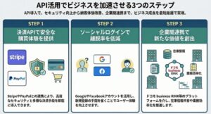 APIは、単なる技術的なツールではなく、ビジネス戦略を成功に導くための重要な要素です。APIを理解し、適切に活用することで、あなたのビジネスは、新たな高みへと到達するでしょう。さあ、APIの世界へ飛び込み、ビジネスの可能性を広げましょう。APIは、あなたのビジネスの未来を切り開く鍵となるでしょう。