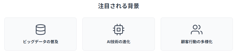 デジタル化の加速により、企業は顧客のオンライン上での行動や購買履歴など、大量のデータを収集できるようになりました。これらのデータを分析することで、顧客のニーズや行動パターンをより深く理解し、パーソナライズされたサービスや製品を提供することが可能になります。