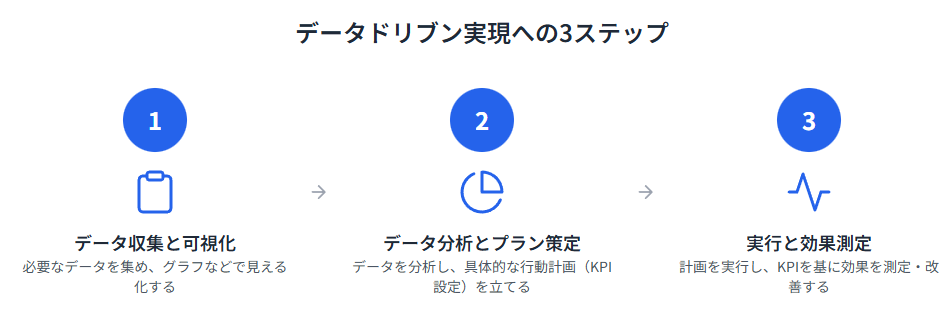 データドリブンなアプローチは、単にデータを収集・分析するだけでなく、そこから得られた知見を具体的なアクションに繋げることが重要です。データの可視化や分析ツールを活用し、誰でもデータにアクセスして理解できるような環境を整えることも、データドリブンを成功させるための重要な要素となります。データに基づいて迅速かつ柔軟に戦略を修正し、ビジネスの成長を加速させることが、データドリブンの本質と言えるでしょう。