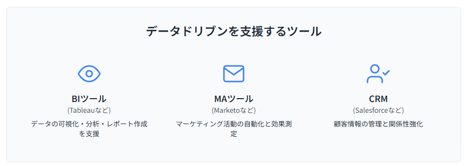 データドリブンな意思決定を支援するツールとして、BI(ビジネスインテリジェンス)ツールは非常に重要な役割を果たします。TableauのようなBIツールは、データの可視化、分析、レポート作成を支援し、データに基づいた意思決定を促進します。