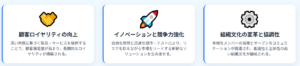 また、デザイン思考は、顧客とのエンゲージメントを高める効果もあります。顧客をデザインプロセスに参加させることで、顧客は製品やサービスに対する愛着を深め、長期的なロイヤリティを築くことができます。顧客満足度とロイヤリティの向上は、ビジネスの成長に不可欠な要素です。