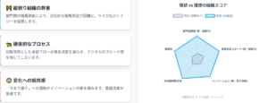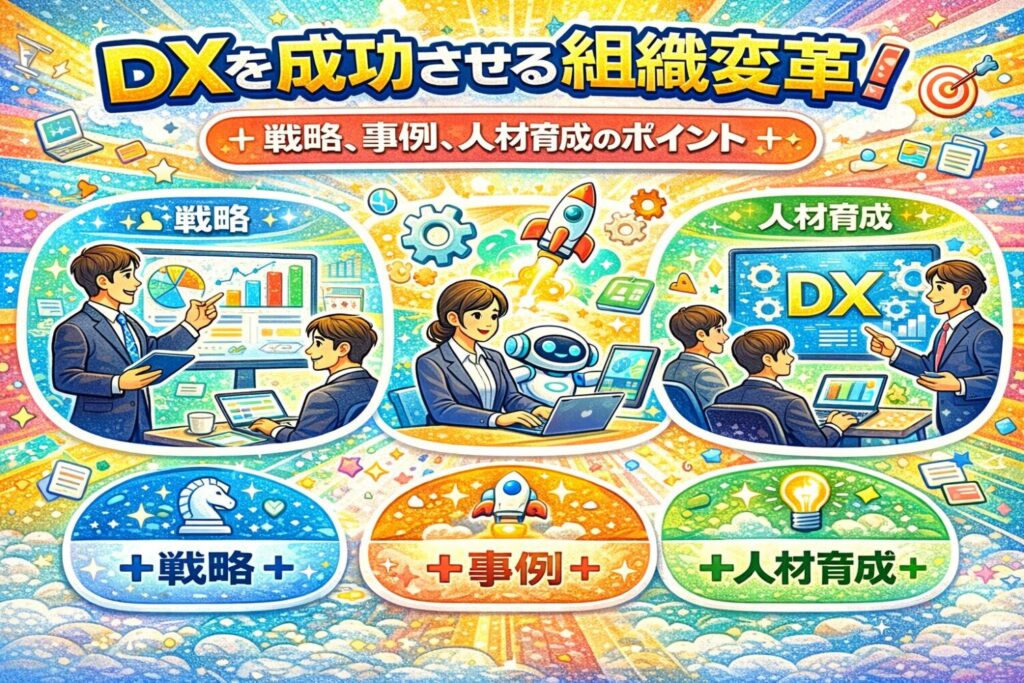 組織変革は、DXを成功させるための重要な要素です。経営層のコミットメント、適切な組織構造の選択、人材育成、そして組織文化の変革を通じて、DXを加速させましょう。味の素、富士通、NTTデータの事例を参考に、貴社独自のDX戦略を構築してください。組織変革は、一度限りの取り組みではなく、継続的な改善が必要です。常に変化するビジネス環境に対応し、組織を最適化し続けることが重要です。DXを成功させるためには、組織全体が一丸となって取り組むことが不可欠です。組織文化を変革し、従業員が積極的にDXに参加できる環境を整備しましょう。組織変革を通じて、DXを成功させ、競争優位性を確立しましょう。組織全体の能力向上により、持続的な成長を実現することが可能になります。DX推進は、企業の未来を左右する重要な取り組みです。