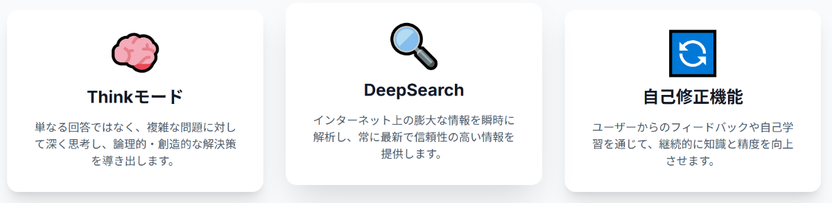 DeepSearch機能は、インターネット上の膨大な情報を瞬時に解析し、ユーザーの質問に最適な情報を提供します。 この機能により、Grok3は常に最新の情報に基づいた回答を提供し、 ユーザーは信頼性の高い情報を得ることができます。