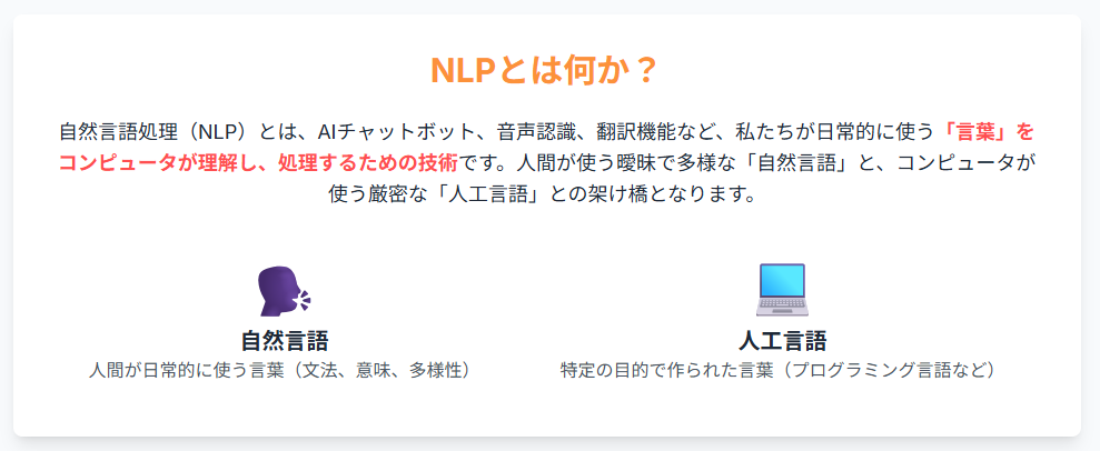 自然言語とは、私たちが日常的に使用している言語のことです。文法や意味構造を持ち、コミュニケーションを円滑に行うためのツールとして機能します。自然言語処理では、これらの言語をコンピュータが理解し、処理できるようにするための技術を開発します。