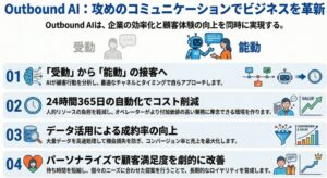 AIを活用したアウトバウンド戦略で、顧客エンゲージメントを向上させ、ビジネスを成長させる方法をご紹介します。事例や導入のヒントも満載。