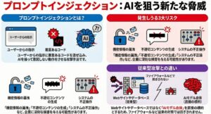AIモデルは、ユーザーからの指示(プロンプト)に基づいて動作しますが、このプロンプトに悪意のあるコードや指示が混入されると、AIモデルが本来の目的とは異なる動作をしてしまうのです。