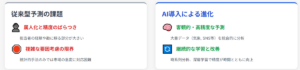 AI導入により、大量のデータを客観的に分析し、高精度な予測が可能になります。これにより、在庫最適化、業務効率化、データに基づいた意思決定が実現します。AIは、過去の販売データだけでなく、気象データ、SNSの投稿、競合他社の情報など、様々なデータを統合的に分析することができます。これにより、従来の手法では捉えきれなかった需要の変動要因を把握し、より正確な予測を行うことができます。さらに、AIは予測結果を可視化し、担当者が理解しやすい形で提供することができます。これにより、担当者はAIの予測結果に基づいて、より迅速かつ的確な意思決定を行うことができます。AI導入は、企業の競争力強化に大きく貢献します。