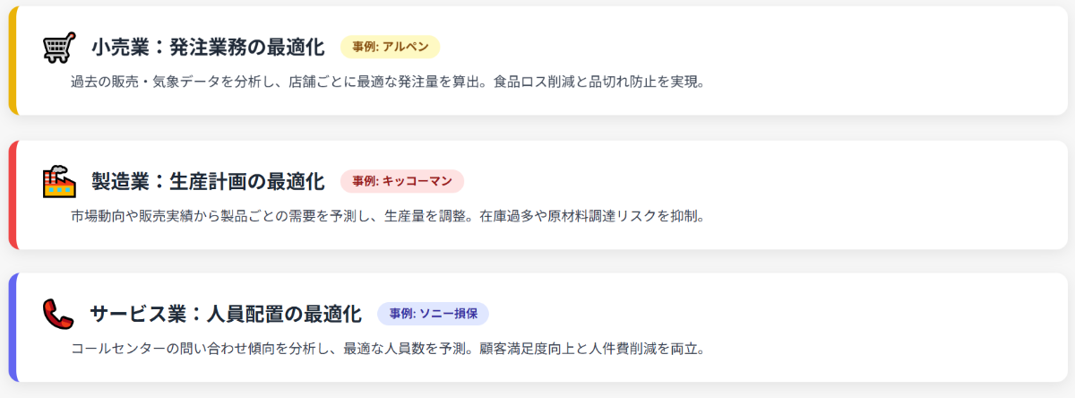サービス業:需要予測による人員配置の最適化(例:ソニー損保)